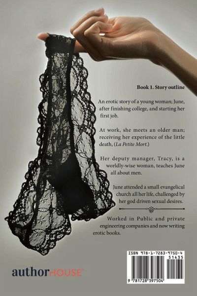 Book 1. Story outline An erotic story of a young woman; June, after finishing college, and starting her first job. At work, she meets an older man; receiving her experience of the little death, (La Petite Mort.) Her deputy manager, Tracy, is a worldly-wise woman, teaches June all about men. June attended a small evangelical church all her life, challenged by her god driven sexual desires.