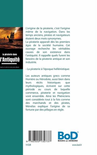 La piraterie apparaît dès les premiers âges de la société humaine. Cet ouvrage recherche les véritables causes de son existence dans l'antiquité. Il rappelle quels furent les besoins de la piraterie antique et son industrie.