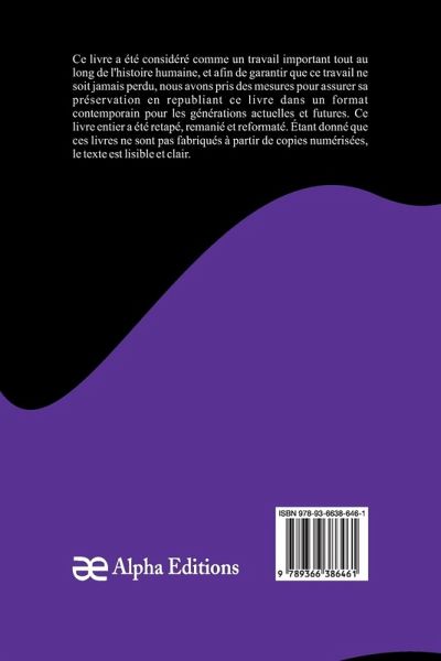La piraterie dans l'antiquité" est un livre classique, qui a eu une valeur significative tout au long de l'histoire, et pour garantir que sa sagesse intemporelle ne soit jamais perdue, Alpha Editions l'a soigneusement préservé en le republiant dans un format moderne et accessible aux générations présentes et futures. Soigneusement reformaté, retapé , et nouvellement conçue, cette édition offre un texte clair et lisible, sans copies numérisées de l'uvre originale, Alpha Editions se consacre à insuffler une nouvelle vie aux livres anciens et classiques, rendant ces trésors littéraires à nouveau disponibles pour les lecteurs qui chérissent l'histoire. culture et savoir intemporel.