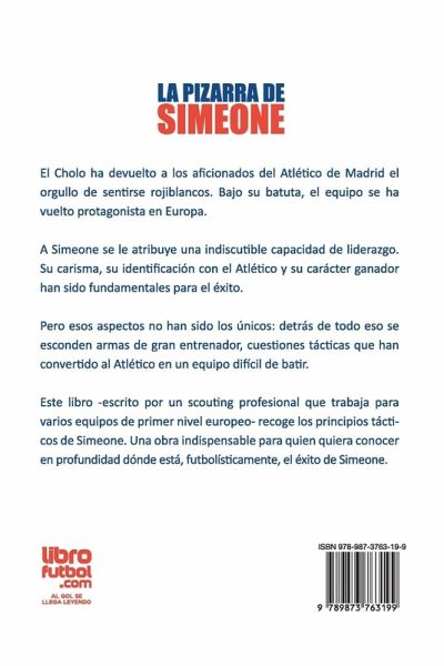 El Cholo ha devuelto a los aficionados del Atlético de Madrid el orgullo de sentirse rojiblancos. Bajo su batuta, el equipo se ha vuelto protagonista en Europa. A Simeone se le atribuye una indiscutible capacidad de liderazgo. Su carisma, su identificación con el Atlético y su carácter ganador han sido fundamentales para el éxito. Pero esos aspectos no han sido los únicos: detrás de todo eso se esconden armas de gran entrenador, cuestiones tácticas que han convertido al Atlético en un equipo difícil de batir. Este libro -escrito por un scouting profesional que trabaja para varios equipos de primer nivel europeo- recoge los principios tácticos de Simeone. Una obra indispensable para quien quiera conocer en profundidad dónde está, futbolísticamente, el éxito de Simeone.