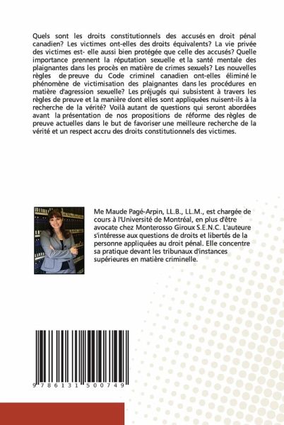 Quels sont les droits constitutionnels des accusés en droit pénal canadien? Les victimes ont-elles des droits équivalents? La vie privée des victimes est- elle aussi bien protégée que celle des accusés? Quelle importance prennent la réputation sexuelle et la santé mentale des plaignantes dans les procès en matière de crimes sexuels? Les nouvelles règles de preuve du Code criminel canadien ont-elles éliminé le phénomène de victimisation des plaignantes dans les procédures en matière d'agression sexuelle? Les préjugés qui subsistent à travers les règles de preuve et la manière dont elles sont appliquées nuisent-ils à la recherche de la vérité? Voilà autant de questions qui seront abordées avant la présentation de nos propositions de réforme des règles de preuve actuelles dans le but de favoriser une meilleure recherche de la vérité et un respect accru des droits constitutionnels des victimes.