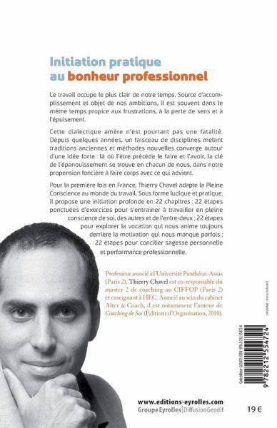 Initiation pratique au bonheur professionnelLe travail occupe le plus clair de notre temps. Source d'accomplissement et objet de nos ambitions, il est souvent dans le même temps propice aux frustrations, à la perte de sens et à l'épuisement.Cette dialectique amère n'est pourtant pas une fatalité. Depuis quelques années, un faisceau de disciplines mêlant traditions anciennes et méthodes nouvelles converge autour d'une idée forte: là où l'être précède le faire et l'avoir, la clé de l'épanouissement se trouve en chacun de nous, dans notre propension foncière à faire corps avec ce qui advient.Pour la première fois en France, Thierry Chavel adapte la Pleine Conscience au monde du travail. Sous forme ludique et pratique, il propose une initiation profonde en 22 chapitres:22 étapes ponctuées d'exercices pour s'entraîner à travailler en pleine conscience de soi, des autres et de l'entre-deux;22 étapes pour explorer la vocation qui nous anime toujours derrière la motivation qui nous manque parfois;22 étapes pour concilier sagesse personnelle et performance professionnelle.