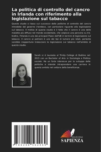Questo studio si basa sul successo delle politiche di controllo del cancro introdotte dal governo irlandese, con particolare riguardo alla legislazione sul tabacco. Il motivo di questo studio è il fatto che il cancro è una delle malattie più diffuse nel mondo occidentale, che colpisce una persona su tre. Inoltre, l'Irlanda è uno dei principali Paesi dell'UE in termini di legislazione sul tabacco. Il cancro ai polmoni è uno dei tipi di tumore più letali, pertanto sarebbe inopportuno tralasciare la legislazione sul tabacco nell'ambito di questo studio.
