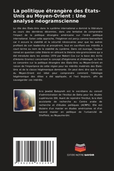 Le rôle des États-Unis dans le système international a dominé la littérature au cours des dernières décennies, dans une tentative de comprendre l'impact de la politique étrangère américaine sur l'ordre politique international. Selon cette approche, l'hégémon est perçu comme bienveillant car il assure la stabilité et la sécurité nécessaires pour que les autres profitent de son leadership et prospèrent, tout en sacrifiant ses intérêts à court terme au nom de la stabilité du système. Dans cet ouvrage, l'auteur remet en question cette théorie en utilisant la théorie néo-gramscienne qui a été introduite dans les années 1970 par Robert Cox sur la base des écrits d'Antonio Gramsci concernant le concept d'hégémonie et d'idéologie. Le livre se concentre sur la politique étrangère des États-Unis au Moyen-Orient en raison de l'importance de cette région pour les intérêts matériels des États-Unis et de la classe hégémonique dominante. On peut donc dire que le cas du Moyen-Orient est idéal pour comprendre comment l'idéologie hégémonique des élites a été appliquée, et l'est toujours, afin de sauvegarder ces intérêts.