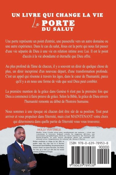 LA PORTE DU SALUT : COMMENT NAITRE DE NOUVEAU Êtes-vous sûr de votre cheminement spirituel ? Vous demandez-vous parfois si vous marchez vraiment dans la lumière ? Dans un monde de croyances diverses, il est temps de trouver la clarté et l'assurance. Derrière les chaires, dans les livres et dans d'innombrables vidéos, des idées fausses ont tissé une toile de confusion. Beaucoup ont été amenés à croire qu'ils étaient "nés de nouveau", alors qu'en réalité, ils vivent dans une simulation spirituelle. Dans ce livre qui suscite la réflexion et remue l'âme, "La Porte du Salut : Comment Naître de Nouveau", l'auteur expose sans crainte les mythes et les tromperies qui ont entaché La vue spirituel pendant trop longtemps. C'est un appel au réveil pour tous ceux qui veulent aller au paradis. Pour les chercheurs de la vérité : Si vous explorez la spiritualité ou si vous appartenez à une autre croyance, ce livre vous accueille à bras ouverts. C'est une invitation à comprendre la perspective chrétienne sur le salut, la grâce et le chemin du salut. C'est l'occasion de trouver des réponses et d'explorer vos propres croyances sous un jour nouveau. Pour les chrétiens : Si vous êtes déjà croyant, ce livre renforcera votre foi. Plongez dans les enseignements de la Bible sur la grâce, la rédemption et la transformation. Explorez les profondeurs de votre foi et découvrez un nouveau niveau de certitude spirituelle. "LA PORTE DU SALUT : COMMENT NAITRE DE NOUVEAU" n'est pas seulement un livre ; c'est une bouée de sauvetage pour comprendre votre salut, quel que soit l'endroit où vous vous trouvez sur votre chemin spirituel. C'est une invitation à un réveil profond et un guide qui vous permettra de vous assurer que vous êtes sur le bon chemin. Principaux Points Forts :"La nature de l'humanité : Plongez dans l'essence même de ce que signifie être humain et dans l'aspiration innée au salut qui réside en chacun de nous. "Le don de la grâce" : Découvrez le don profond de la grâce, la pierre angulaire du salut, et apprenez comment il peut transformer votre vie au-delà de toute imagination. "Repentance et pardon" : Explorez le pouvoir de transformation de la repentance et du pardon, étapes essentielles sur le chemin de la véritable rédemption. "L'urgence de l'heure" : Ressentez l'urgence de ce moment charnière dans votre cheminement spirituel et découvrez pourquoi l'attente n'est plus une option. "La porte du salut" : Enfin, atteignez le seuil du salut lui-même. Franchissez la porte qui mène à une vie authentique, sans péché, remplie d'objectifs et de sens. Il est temps de mettre fin aux simulations spirituelles, aux faux enseignements et à l'incertitude. Que vous soyez un chercheur de la foi chrétienne ou que vous veniez d'un milieu spirituel différent, "La Porte du Salut" est votre invitation à une révélation profonde. Faites le premier pas vers une vie de salut et d'épanouissement authentiques. Commandez dès aujourd'hui "La Porte du Salut" et soyez sûr de votre cheminement spirituel. Votre destin vous attend de l'autre côté de la porte !