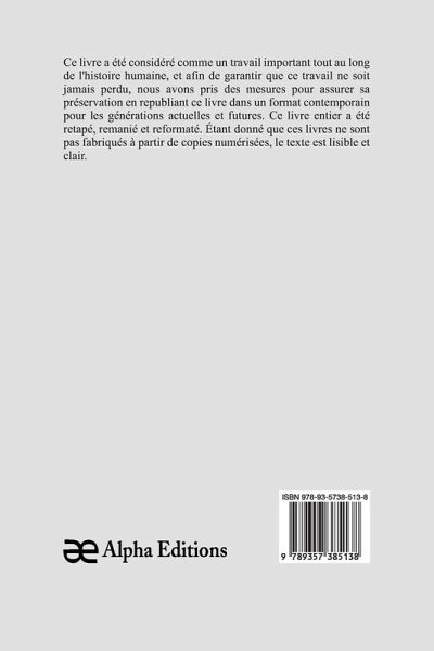 La poudre aux yeux, a été considérée comme importante tout au long de l'histoire de l'humanité. Dans un effort pour s'assurer que ce travail ne soit jamais perdu, nous avons pris des mesures pour assurer sa préservation en republiant ce livre dans un format moderne pour les générations actuelles et futures. Ce livre complet a été retapé, remanié et reformaté. Comme ces livres ne sont pas des scans des publications originales des auteurs, le texte est lisible et clair.