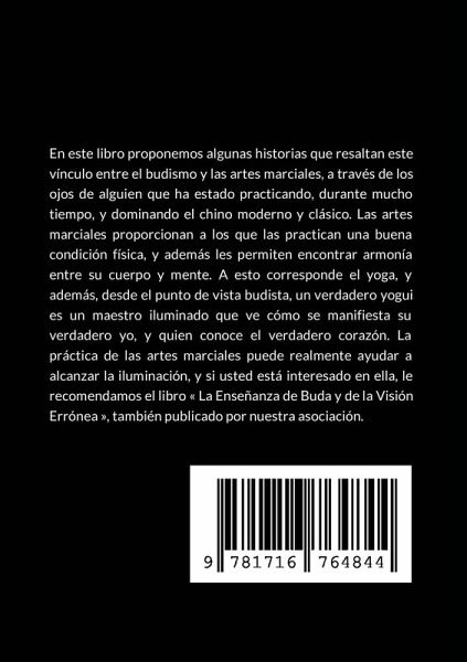 En este libro proponemos algunas historias que resaltan este vínculo entre el budismo y las artes marciales, a través de los ojos de alguien que ha estado practicando, durante mucho tiempo, y dominando el chino moderno y clásico. Las artes marciales proporcionan a los que las practican una buena condición física, y además les permiten encontrar armonía entre su cuerpo y mente. A esto corresponde el yoga, y además, desde el punto de vista budista, un verdadero yogui es un maestro iluminado que ve cómo se manifiesta su verdadero yo, y quien conoce el verdadero corazón. La práctica de las artes marciales puede realmente ayudar a alcanzar la iluminación, y si usted está interesado en ella, le recomendamos el libro La Enseñanza de Buda y de la Visión Errónea , también publicado por nuestra asociación.