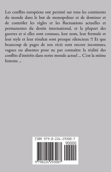 Les conflits européens ont persisté sur tous les continents du monde dans le but de monopoliser et de dominer et de contrôler les règles et les fluctuations actuelles et permanentes du destin international, et la plupart des guerres et si elles sont connues, leur nom, leur formule et leur style et leur résultat sont presque silencieux !! Et que beaucoup de pages de son récit sont encore inconnues, vagues ou absentes pour ne pas connaître la réalité des conflits d'intérêts dans notre monde actuel ... C'est la même histoire ...