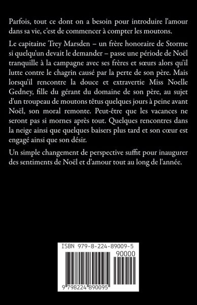 Parfois, tout ce dont on a besoin pour introduire l'amour dans sa vie, c'est de commencer à compter les moutons. Le capitaine Trey Marsden - un frère honoraire de Storme si quelqu'un devait le demander - passe une période de Noël tranquille à la campagne avec ses frères et s¿urs alors qu'il lutte contre le chagrin causé par la perte de son père. Mais lorsqu'il rencontre la douce et extravertie Miss Noelle Gedney, fille du gérant du domaine de son père, au sujet d'un troupeau de moutons têtus quelques jours à peine avant Noël, son moral remonte. Peut-être que les vacances ne seront pas si mornes après tout. Quelques rencontres dans la neige ainsi que quelques baisers plus tard et son c¿ur est engagé ainsi que son désir. Un simple changement de perspective suffit pour inaugurer des sentiments de Noël et d'amour tout au long de l'année.