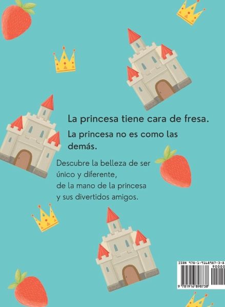 La princesa tiene una cara roja y parecida a una fresa, y aunque es feliz, ella se siente incómoda cuando le preguntan por ella. Pero con la ayuda de unos divertidos personajes, la princesa emprende un viaje para aprender a aceptarse tal y cómo es y descubre la belleza que hay dentro de ella. La princesa con cara de fresa es un cuento corto en el que se habla de la importancia de aceptarse a uno mismo, con nuestras diferencias, las cuales nos hace únicos y especiales. El cuento usa el humor y la repetición para enseñar valores importantes a los niños y niñas e inspirarles a amarse y aceptarse a sí mismos.