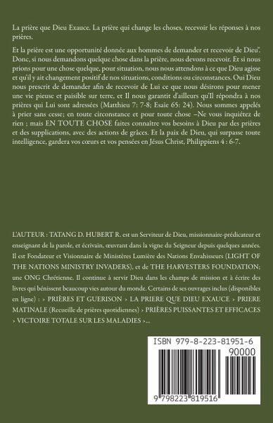 La prière que Dieu Exauce. La prière qui change les choses, recevoir les réponses à nos prières. Et la prière est une opportunité donnée aux hommes de demander et recevoir de Dieu". Donc, si nous demandons quelque chose dans la prière, nous devons recevoir. Et si nous prions pour une chose quelque, pour situation, nous nous attendons à ce que Dieu agisse et qu'il y ait changement positif de nos situations, conditions ou circonstances. Oui Dieu nous prescrit de demander afin de recevoir de Lui ce que nous désirons pour mener une vie pieuse et paisible sur terre, et Il nous garantit d'ailleurs…mehr