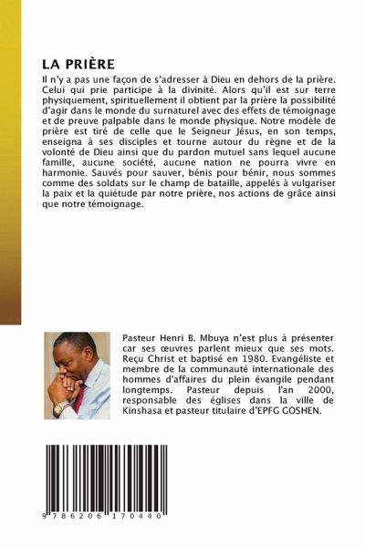 Il n'y a pas une façon de s'adresser à Dieu en dehors de la prière. Celui qui prie participe à la divinité. Alors qu'il est sur terre physiquement, spirituellement il obtient par la prière la possibilité d'agir dans le monde du surnaturel avec des effets de témoignage et de preuve palpable dans le monde physique. Notre modèle de prière est tiré de celle que le Seigneur Jésus, en son temps, enseigna à ses disciples et tourne autour du règne et de la volonté de Dieu ainsi que du pardon mutuel sans lequel aucune famille, aucune société, aucune nation ne pourra vivre en harmonie. Sauvés pour sauver, bénis pour bénir, nous sommes comme des soldats sur le champ de bataille, appelés à vulgariser la paix et la quiétude par notre prière, nos actions de grâce ainsi que notre témoignage.