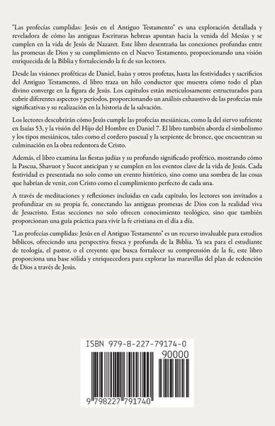 "Las profecías cumplidas: Jesús en el Antiguo Testamento" es una exploración detallada y reveladora de cómo las antiguas Escrituras hebreas apuntan hacia la venida del Mesías y se cumplen en la vida de Jesús de Nazaret. Este libro desentraña las conexiones profundas entre las promesas de Dios y su cumplimiento en el Nuevo Testamento, proporcionando una visión enriquecida de la Biblia y fortaleciendo la fe de sus lectores. Desde las visiones proféticas de Daniel, Isaías y otros profetas, hasta las festividades y sacrificios del Antiguo Testamento, el libro traza un hilo conductor que muestra cómo todo el plan divino converge en la figura de Jesús. Los capítulos están meticulosamente estructurados para cubrir diferentes aspectos y períodos, proporcionando un análisis exhaustivo de las profecías más significativas y su realización en la historia de la salvación. Los lectores descubrirán cómo Jesús cumple las profecías mesiánicas, como la del siervo sufriente en Isaías 53, y la visión del Hijo del Hombre en Daniel 7. El libro también aborda el simbolismo y los tipos mesiánicos, tales como el cordero pascual y la serpiente de bronce, que encuentran su culminación en la obra redentora de Cristo. Además, el libro examina las fiestas judías y su profundo significado profético, mostrando cómo la Pascua, Shavuot y Sucot anticipan y se cumplen en los eventos clave de la vida de Jesús. Cada festividad es presentada no solo como un evento histórico, sino como una sombra de las cosas que habrían de venir, con Cristo como el cumplimiento perfecto de cada una. A través de meditaciones y reflexiones incluidas en cada capítulo, los lectores son invitados a profundizar en su propia fe, conectando las antiguas promesas de Dios con la realidad viva de Jesucristo. Estas secciones no solo ofrecen conocimiento teológico, sino que también proporcionan una guía práctica para vivir la fe cristiana en el día a día. "Las profecías cumplidas: Jesús en el Antiguo Testamento" es un recurso invaluable para estudios bíblicos, ofreciendo una perspectiva fresca y profunda de la Biblia. Ya sea para el estudiante de teología, el pastor, o el creyente que busca fortalecer su comprensión de la fe, este libro proporciona una base sólida y enriquecedora para explorar las maravillas del plan de redención de Dios a través de Jesús.