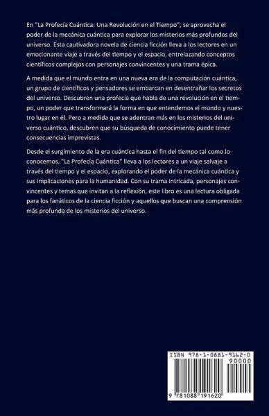 En "La Profecía Cuántica: Una Revolución en el Tiempo", se aprovecha el poder de la mecánica cuántica para explorar los misterios más profundos del universo. Esta cautivadora novela de ciencia ficción lleva a los lectores en un emocionante viaje a través del tiempo y el espacio, entrelazando conceptos científicos complejos con personajes convincentes y una trama épica. A medida que el mundo entra en una nueva era de la computación cuántica, un grupo de científicos y pensadores se embarcan en desentrañar los secretos del universo. Descubren una profecía que habla de una revolución en el tiempo, un poder que transformará la forma en que entendemos el mundo y nuestro lugar en él. Pero a medida que se adentran más en los misterios del universo cuántico, descubren que su búsqueda de conocimiento puede tener consecuencias imprevistas. Desde el surgimiento de la era cuántica hasta el fin del tiempo tal como lo conocemos, "La Profecía Cuántica" lleva a los lectores a un viaje salvaje a través del tiempo y el espacio, explorando el poder de la mecánica cuántica y sus implicaciones para la humanidad. Con su trama intricada, personajes convincentes y temas que invitan a la reflexión, este libro es una lectura obligada para los fanáticos de la ciencia ficción y aquellos que buscan una comprensión más profunda de los misterios del universo.