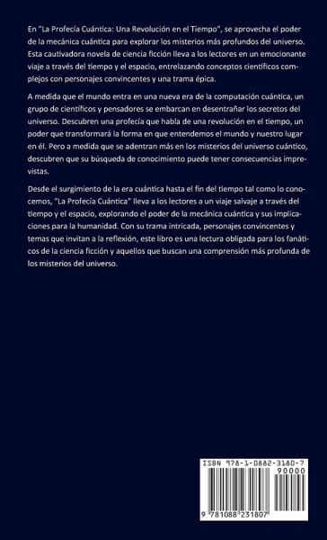 En "La Profecía Cuántica: Una Revolución en el Tiempo", se aprovecha el poder de la mecánica cuántica para explorar los misterios más profundos del universo. Esta cautivadora novela de ciencia ficción lleva a los lectores en un emocionante viaje a través del tiempo y el espacio, entrelazando conceptos científicos complejos con personajes convincentes y una trama épica. A medida que el mundo entra en una nueva era de la computación cuántica, un grupo de científicos y pensadores se embarcan en desentrañar los secretos del universo. Descubren una profecía que habla de una revolución en el tiempo, un poder que transformará la forma en que entendemos el mundo y nuestro lugar en él. Pero a medida que se adentran más en los misterios del universo cuántico, descubren que su búsqueda de conocimiento puede tener consecuencias imprevistas. Desde el surgimiento de la era cuántica hasta el fin del tiempo tal como lo conocemos, "La Profecía Cuántica" lleva a los lectores a un viaje salvaje a través del tiempo y el espacio, explorando el poder de la mecánica cuántica y sus implicaciones para la humanidad. Con su trama intricada, personajes convincentes y temas que invitan a la reflexión, este libro es una lectura obligada para los fanáticos de la ciencia ficción y aquellos que buscan una comprensión más profunda de los misterios del universo.