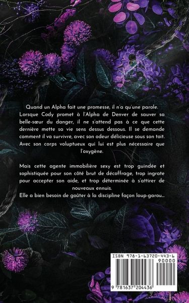 Quand un Alpha fait une promesse, il n'a qu'une parole. Lorsque Cody promet à l'Alpha de Denver de sauver sa belle-sur du danger, il ne s'attend pas à ce que cette dernière mette sa vie sens dessus dessous. Il se demande comment il va survivre, avec son odeur délicieuse sous son toit. Avec son corps voluptueux qui lui est plus nécessaire que l'oxygène. Mais cette agente immobilière sexy est trop guindée et sophistiquée pour son côté brut de décoffrage, trop ingrate pour accepter son aide, et trop déterminée à s'attirer de nouveaux ennuis. Elle a bien besoin de goûter à la discipline façon loup-garou...