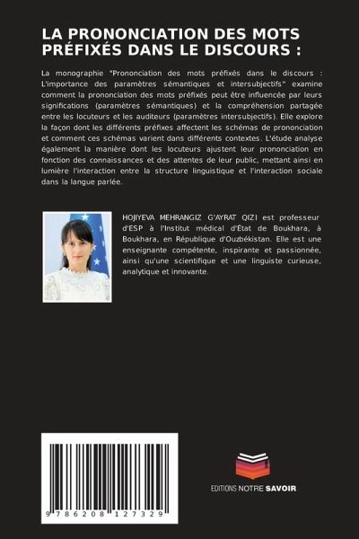 La monographie "Prononciation des mots préfixés dans le discours : L'importance des paramètres sémantiques et intersubjectifs" examine comment la prononciation des mots préfixés peut être influencée par leurs significations (paramètres sémantiques) et la compréhension partagée entre les locuteurs et les auditeurs (paramètres intersubjectifs). Elle explore la façon dont les différents préfixes affectent les schémas de prononciation et comment ces schémas varient dans différents contextes. L'étude analyse également la manière dont les locuteurs ajustent leur prononciation en fonction des connaissances et des attentes de leur public, mettant ainsi en lumière l'interaction entre la structure linguistique et l'interaction sociale dans la langue parlée.