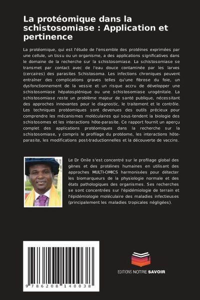 La protéomique, qui est l'étude de l'ensemble des protéines exprimées par une cellule, un tissu ou un organisme, a des applications significatives dans le domaine de la recherche sur la schistosomiase. La schistosomiase se transmet par contact avec de l'eau douce contaminée par les larves (cercaires) des parasites Schistosoma. Les infections chroniques peuvent entraîner des complications graves telles qu'une fibrose du foie, un dysfonctionnement de la vessie et un risque accru de développer une schistosomiase hépatosplénique ou une schistosomiase urogénitale. La schistosomiase reste un problème majeur de santé publique, nécessitant des approches innovantes pour le diagnostic, le traitement et le contrôle. Les techniques protéomiques sont devenues des outils précieux pour comprendre les mécanismes moléculaires qui sous-tendent la biologie des schistosomes et les interactions hôte-parasite. Ce rapport fournit un aperçu complet des applications protéomiques dans la recherche sur la schistosomiase, y compris le profilage du protéome, les interactions hôte-parasite, les modifications post-traductionnelles et la découverte de vaccins.