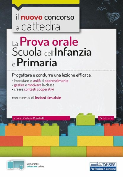 Rivolto ai partecipanti al Concorso a cattedra per la Scuola dell'Infanzia e per la Scuola primaria, il volume nella prima parte mette a confronto i principali modelli di apprendimento e il loro impiego nella progettazione didattica e nella valutazione: tali conoscenze rappresentano un imprescindibile prerequisito per qualsiasi insegnante che aspiri a condurre una lezione efficace. La seconda parte analizza nel dettaglio i diversi modi di fare lezione (dalla lezione frontale a quella partecipata) e i diversi metodi, in particolare quelli che utilizzano le nuove tecnologie. Vengono inoltre esaminati i presupposti dell'apprendimento collaborativo e cooperativo e le relative teorie di riferimento. La terza parte è dedicata all'assetto ordinamentale della Scuola dell'Infanzia e della Primaria così come delineato nelle indicazioni nazionali del 2012. La quarta parte è incentrata sulla pratica dell'attività didattica e contiene esempi di progetti, unità di apprendimento e lezioni simulate in cui sono evidenziate le scelte didattiche e le metodologie adottate. Il testo è completato da materiali didattici e risorse di studio accessibili online nell'area riservata. Das Urheberrecht an bibliographischen und produktbeschreibenden Daten und an den bereitgestellten Bildern liegt bei Informazioni Editoriali, I.E. S.r.l., oder beim Herausgeber oder demjenigen, der die Genehmigung erteilt hat. Alle Rechte vorbehalten.