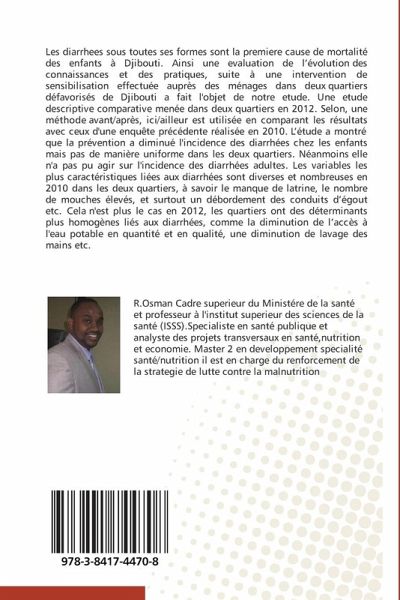 Les diarrhees sous toutes ses formes sont la premiere cause de mortalité des enfants à Djibouti. Ainsi une evaluation de l évolution des connaissances et des pratiques, suite à une intervention de sensibilisation effectuée auprès des ménages dans deux quartiers défavorisés de Djibouti a fait l'objet de notre etude. Une etude descriptive comparative menée dans deux quartiers en 2012. Selon, une méthode avant/après, ici/ailleur est utilisée en comparant les résultats avec ceux d'une enquête précédente réalisée en 2010. L étude a montré que la prévention a diminué l'incidence des diarrhées chez les enfants mais pas de manière uniforme dans les deux quartiers. Néanmoins elle n'a pas pu agir sur l'incidence des diarrhées adultes. Les variables les plus caractéristiques liées aux diarrhées sont diverses et nombreuses en 2010 dans les deux quartiers, à savoir le manque de latrine, le nombre de mouches élevés, et surtout un débordement des conduits d égout etc. Cela n'est plus le cas en 2012, les quartiers ont des déterminants plus homogènes liés aux diarrhées, comme la diminution de l accès à l'eau potable en quantité et en qualité, une diminution de lavage des mains etc.