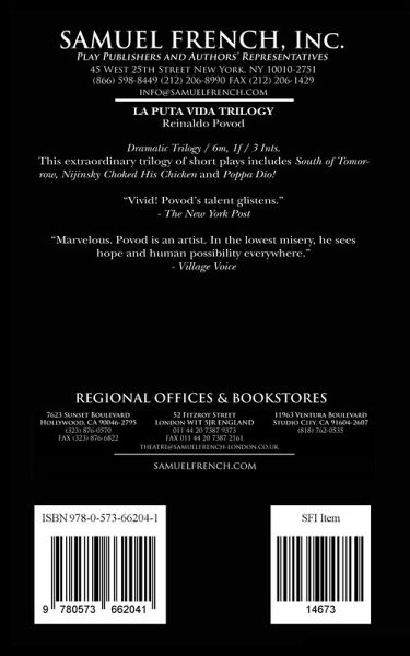 Dramatic Trilogy / 6m, 1f / 3 Ints. This extraordinary trilogy of short plays includes "South of Tomorrow," "Nijinsky Choked His Chicken" and "Poppa Dio!" "Vivid! Povod's talent glistens." - The New York Post "Marvelous. Povod is an artist. In the lowest misery, he sees hope and human possibility everywhere." - Village Voice