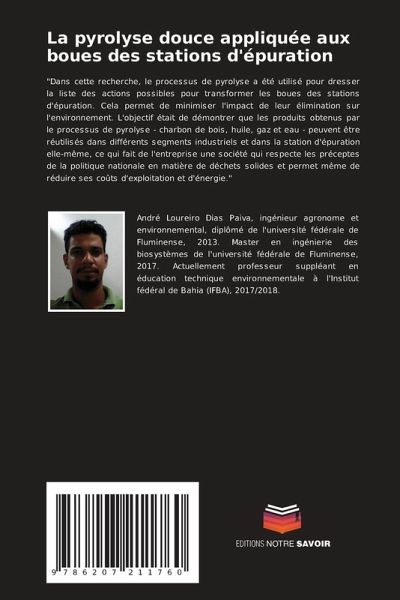 "Dans cette recherche, le processus de pyrolyse a été utilisé pour dresser la liste des actions possibles pour transformer les boues des stations d'épuration. Cela permet de minimiser l'impact de leur élimination sur l'environnement. L'objectif était de démontrer que les produits obtenus par le processus de pyrolyse - charbon de bois, huile, gaz et eau - peuvent être réutilisés dans différents segments industriels et dans la station d'épuration elle-même, ce qui fait de l'entreprise une société qui respecte les préceptes de la politique nationale en matière de déchets solides et permet même de réduire ses coûts d'exploitation et d'énergie."