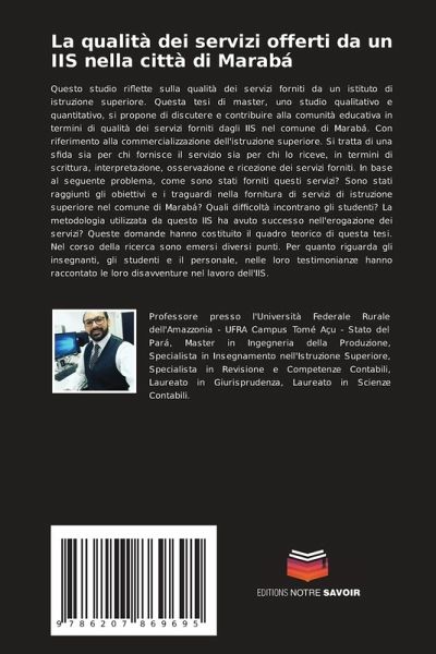 Questo studio riflette sulla qualità dei servizi forniti da un istituto di istruzione superiore. Questa tesi di master, uno studio qualitativo e quantitativo, si propone di discutere e contribuire alla comunità educativa in termini di qualità dei servizi forniti dagli IIS nel comune di Marabá. Con riferimento alla commercializzazione dell'istruzione superiore. Si tratta di una sfida sia per chi fornisce il servizio sia per chi lo riceve, in termini di scrittura, interpretazione, osservazione e ricezione dei servizi forniti. In base al seguente problema, come sono stati forniti questi servizi? Sono stati raggiunti gli obiettivi e i traguardi nella fornitura di servizi di istruzione superiore nel comune di Marabá? Quali difficoltà incontrano gli studenti? La metodologia utilizzata da questo IIS ha avuto successo nell'erogazione dei servizi? Queste domande hanno costituito il quadro teorico di questa tesi. Nel corso della ricerca sono emersi diversi punti. Per quanto riguarda gli insegnanti, gli studenti e il personale, nelle loro testimonianze hanno raccontato le loro disavventure nel lavoro dell'IIS.