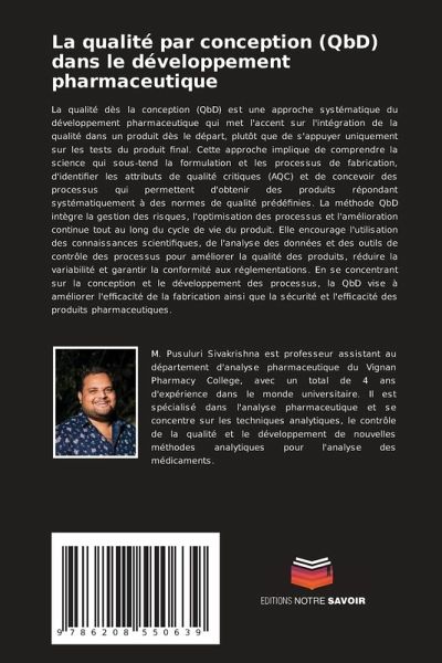 La qualité dès la conception (QbD) est une approche systématique du développement pharmaceutique qui met l'accent sur l'intégration de la qualité dans un produit dès le départ, plutôt que de s'appuyer uniquement sur les tests du produit final. Cette approche implique de comprendre la science qui sous-tend la formulation et les processus de fabrication, d'identifier les attributs de qualité critiques (AQC) et de concevoir des processus qui permettent d'obtenir des produits répondant systématiquement à des normes de qualité prédéfinies. La méthode QbD intègre la gestion des risques, l'optimisation des processus et l'amélioration continue tout au long du cycle de vie du produit. Elle encourage l'utilisation des connaissances scientifiques, de l'analyse des données et des outils de contrôle des processus pour améliorer la qualité des produits, réduire la variabilité et garantir la conformité aux réglementations. En se concentrant sur la conception et le développement des processus, la QbD vise à améliorer l'efficacité de la fabrication ainsi que la sécurité et l'efficacité des produits pharmaceutiques.