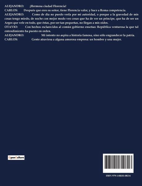 "La quinta de Florencia" es una obra teatral escrita por Félix Lope de Vega y Carpio, uno de los dramaturgos más prolíficos del Siglo de Oro español. La obra se desarrolla en la ciudad de Florencia durante el Renacimiento, un período de gran efervescencia cultural y artística. La trama gira en torno a una serie de enredos amorosos y malentendidos que involucran a varios personajes de la nobleza florentina. A través de diálogos ingeniosos y situaciones cómicas, Lope de Vega explora temas universales como el amor, la traición, la identidad y el honor. El primer acto introduce a los personajes…mehr