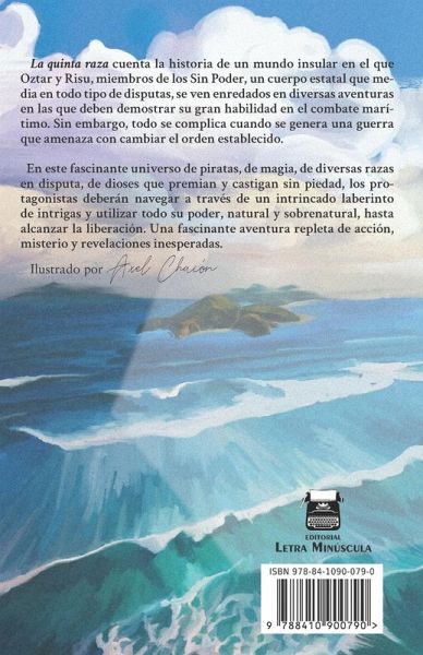 La quinta raza cuenta la historia de un mundo insular en el que Oztar y Risu, miembros de los Sin Poder, un cuerpo estatal que media en todo tipo de disputas, se ven enredados en diversas aventuras en las que deben demostrar su gran habilidad en el combate marítimo. Sin embargo, todo se complica cuando se genera una guerra que amenaza con cambiar el orden establecido. En este fascinante universo de piratas, de magia, de diversas razas en disputa, de dioses que premian y castigan sin piedad, los protagonistas deberán navegar a través de un intrincado laberinto de intrigas y utilizar todo su poder, natural y sobrenatural, hasta alcanzar la liberación. Una fascinante aventura repleta de acción, misterio y revelaciones inesperadas.