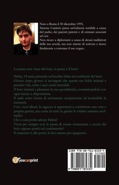 La paura non viene dal buio, la paura è il buio! Helen, 18 anni, presenta un'insolita fobia nei confronti del buio. Giorno dopo giorno si accorgerà che questa sua fobia inizierà a prender vita, sotto i suoi occhi increduli. Il buio inizierà a plasmare la sua quotidianità, contaminandola con ogni mezzo a disposizione. Il male sotto forma di un'essenza onnipresente ed invincibile la torturerà. Con i suoi alleati, la ragazza si appresterà a combattere una vera e propria guerra, ma come in tutte le guerre le vittime saranno molteplici. Chi o cosa potrà salvare Helen? Vivrà per sempre con la paura di essere tormentata e uccisa dal buio oppure perirà nel combatterlo? Il tramonto è alle porte, le luci stanno per spegnersi...