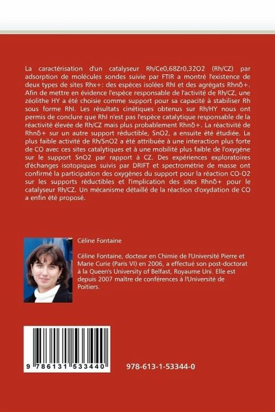 La caractérisation d'un catalyseur Rh/Ce0,68Zr0,32O2 (Rh/CZ) par adsorption de molécules sondes suivie par FTIR a montré l'existence de deux types de sites Rhx+: des espèces isolées RhI et des agrégats Rhn +. Afin de mettre en évidence l'espèce responsable de l'activité de Rh/CZ, une zéolithe HY a été choisie comme support pour sa capacité à stabiliser Rh sous forme RhI. Les résultats cinétiques obtenus sur Rh/HY nous ont permis de conclure que RhI n'est pas l'espèce catalytique responsable de la réactivité élevée de Rh/CZ mais plus probablement Rhn +. La réactivité de Rhn + sur un autre support réductible, SnO2, a ensuite été étudiée. La plus faible activité de Rh/SnO2 a été attribuée à une interaction plus forte de CO avec ces sites catalytiques et à une mobilité plus faible de l'oxygène sur le support SnO2 par rapport à CZ. Des expériences exploratoires d'échanges isotopiques suivis par DRIFT et spectrométrie de masse ont confirmé la participation des oxygènes du support pour la réaction CO-O2 sur les supports réductibles et l'implication des sites Rhn + pour le catalyseur Rh/CZ. Un mécanisme détaillé de la réaction d'oxydation de CO a enfin été proposé.