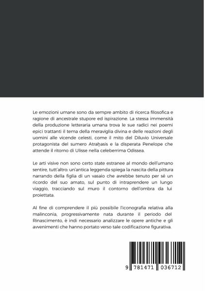 Le emozioni umane sono da sempre ambito di ricerca filosofica e ragione di ancestrale stupore ed ispirazione. La stessa immensità della produzione letteraria umana trova le sue radici nei poemi epici trattanti il tema della meraviglia divina e delle reazioni degli uomini alle vicende celesti, come il mito del Diluvio Universale protagonista del sumero Aträasis e la disperata Penelope che attende il ritorno di Ulisse nella celeberrima Odissea. Le arti visive non sono certo state estranee al mondo dell'umano sentire, tutt'altro: un'antica leggenda spiega la nascita della pittura narrando della figlia di un vasaio che avrebbe tenuto per sé un ricordo del suo amato, sul punto di intraprendere un lungo viaggio, tracciando sul muro il contorno dell'ombra da lui proiettata. Al fine di comprendere il più possibile l'iconografia relativa alla malinconia, progressivamente nata durante il periodo del Rinascimento, è indi necessario analizzare le opere antiche e gli avvenimenti che hanno portato verso tale codificazione figurativa.