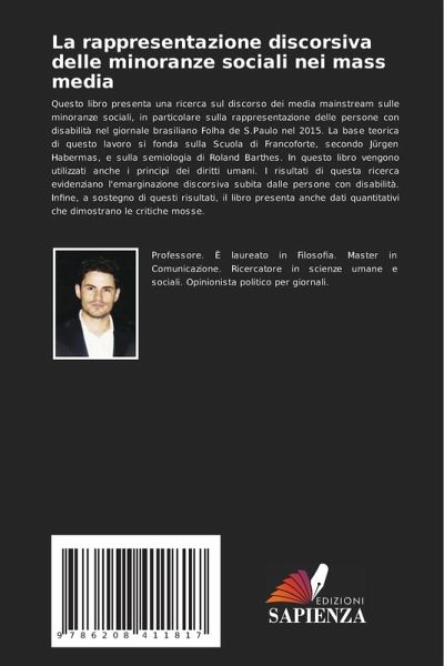 Questo libro presenta una ricerca sul discorso dei media mainstream sulle minoranze sociali, in particolare sulla rappresentazione delle persone con disabilità nel giornale brasiliano Folha de S.Paulo nel 2015. La base teorica di questo lavoro si fonda sulla Scuola di Francoforte, secondo Jürgen Habermas, e sulla semiologia di Roland Barthes. In questo libro vengono utilizzati anche i principi dei diritti umani. I risultati di questa ricerca evidenziano l'emarginazione discorsiva subita dalle persone con disabilità. Infine, a sostegno di questi risultati, il libro presenta anche dati quantitativi che dimostrano le critiche mosse.