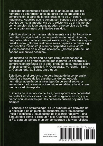 ASTROTEOLOGÍA Un intento por la unificación de los conceptos desarrollados en los ámbitos absolutamente Científicos - Técnicos de la vida y los ámbitos absolutamente Psico-Filosóficos, para lograr un entendimiento mejor y más profundo de lo que la vida nos presenta día a día y de la comprensión de nuestra representación en ella.
