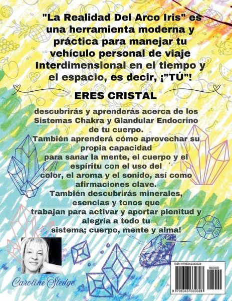 "La Realidad De Arco Iris" es una herramienta moderna y práctica para manejar tu vehículo personal de viaje Interdimensional en el tiempo y el espacio, es decir, ¡"TÚ"! ERES CRISTAL descubrirás y aprenderás acerca de los Sistemas Chakra y Glandular Endocrino de tu cuerpo. También aprenderá cómo aprovechar su propia capacidad para sanar la mente, el cuerpo y el espíritu con el uso del color, el aroma y el sonido, así como afirmaciones clave. También descubrirás minerales, esencias y tonos que trabajan para activar y aportar plenitud y alegría a todo tu sistema; cuerpo, mente y alma!