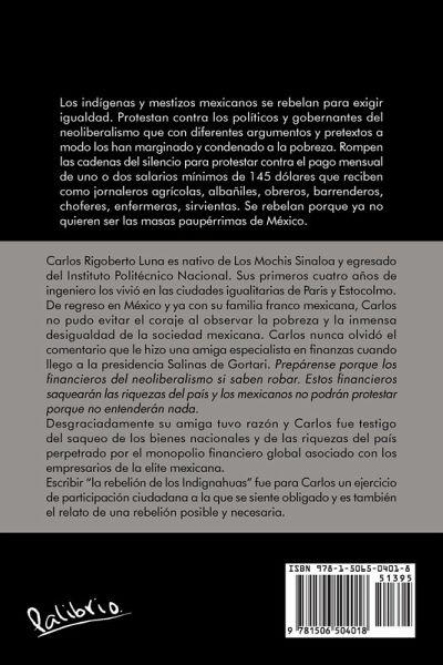 Carlos Rigoberto Luna es nativo de Los Mochis Sinaloa y egresado del Instituto Politécnico Nacional. Sus primeros cuatro años de ingeniero los vivió en las ciudades igualitarias de Paris y Estocolmo. De regreso en México y ya con su familia franco mexicana, Carlos no pudo evitar el coraje al observar la pobreza y la inmensa desigualdad de la sociedad mexicana. Carlos nunca olvidó el comentario que le hizo una amiga especialista en finanzas cuando llego a la presidencia Salinas de Gortari. Prepárense porque los financieros del neoliberalismo si saben robar. Estos financieros saquearán las riquezas del país y los mexicanos no podrán protestar porque no entenderán nada. Desgraciadamente su amiga tuvo razón y Carlos fue testigo del saqueo de los bienes nacionales y de las riquezas del país perpetrado por el monopolio financiero global asociado con los empresarios de la elite mexicana. Escribir "la rebelión de los Indignahuas" fue para Carlos un ejercicio de participación ciudadana a la que se siente obligado y es también el relato de una rebelión posible y necesaria.