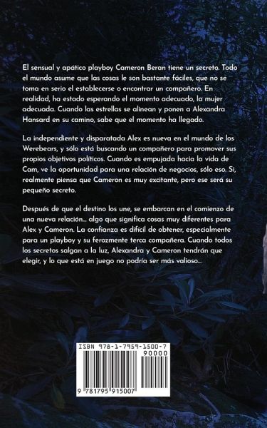 El sensual y apático playboy Cameron Beran tiene un secreto. Todo el mundo asume que las cosas le son bastante fáciles, que no se toma en serio el establecerse o encontrar un compañero. En realidad, ha estado esperando el momento adecuado, la mujer adecuada. Cuando las estrellas se alinean y ponen a Alexandra Hansard en su camino, sabe que el momento ha llegado. La independiente y disparatada Alex es nueva en el mundo de los Werebears, y sólo está buscando un compañero para promover sus propios objetivos políticos. Cuando es empujada hacia la vida de Cam, ve la oportunidad para una relación de negocios, sólo eso. Si, realmente piensa que Cameron es muy excitante, pero ese será su pequeño secreto. Después de que el destino los une, se embarcan en el comienzo de una nueva relación... algo que significa cosas muy diferentes para Alex y Cameron. La confianza es difícil de obtener, especialmente para un playboy y su ferozmente terca compañera. Cuando todos los secretos salgan a la luz, Alexandra y Cameron tendrán que elegir, y lo que está en juego no podría ser más valioso...