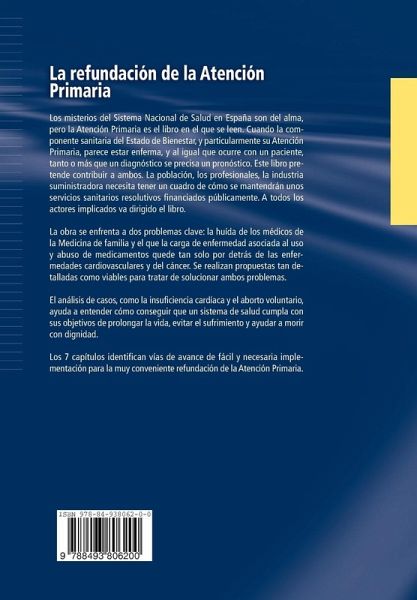 Los misterios del Sistema Nacional de Salud en España son del alma, pero la Atención Primaria es el libro en el que se leen. Cuando la componente sanitaria del Estado de Bienestar, y particularmente su Atención Primaria, parece estar enferma, , tanto o más que un diagnóstico se precisa un pronóstico. Este libro pretende contribuir a ambos. La población, los profesionales, la industria suministradora necesita saber cómo se mantendrán unos servicios sanitarios resolutivos financiados públicamente. La obra se enfrenta a dos problemas clave: la huída de los médicos de la Medicina de familia y el que la carga de enfermedad asociada al uso y abuso de medicamentos quede tan solo por detrás de las enfermedades cardiovasculares y del cáncer. Se realizan propuestas tan detalladas como viables para tratar de solucionar ambos problemas.