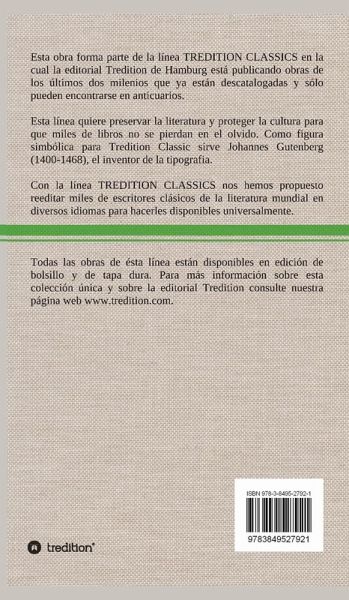 Esta obra (libro de tapa dura) forma parte de la línea TREDITION CLASSICS en la cual la editorial tredition de Hamburgo está publicando obras de los últimos dos milenios que ya están descatalogadas y sólo pueden encontrarse en anticuarios. Esta línea quiere preservar la literatura y proteger la cultura para que miles de libros no se pierdan en el olvido. Con la línea TREDITION CLASSICS nos hemos propuesto reeditar miles de escritores clásicos de la literatura mundial en diversos idiomas para hacerles disponibles universalmente.