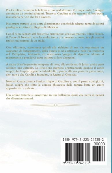 Per Caroline Saunders la bellezza è una maledizione. Ovunque vada, è sempre circondata da uomini adoranti. Tuttavia, Caroline sa che nessuno di loro potrà mai amarla per ciò che lei è davvero. Ha sempre trattato la sua corte di spasimanti con freddo sdegno, tanto da essersi guadagnata il titolo di Regina di Ghiaccio. Con il cuore segnato dal disastroso matrimonio dei suoi genitori, Julian Palmer, il Conte di Newhall, non ha molta fretta di convolare a nozze, ma gli uomini titolati necessitano di un erede. Con riluttanza, acconsente quindi alla richiesta di sua zia: organizzare un soggiorno di festeggiamenti, della durata di una settimana, nella sua residenza nel Derbyshire, invitando un selezionato gruppo di signorine idonee al matrimonio a prendervi parte insieme ai loro chaperon. A causa di un'improvvisa tempesta di neve, alla residenza di Julian arriva però soltanto una carrozza. La situazione peggiora drasticamente quando il conte scopre che l'ospite bagnato e infreddolito, giunto alla sua porta in piena notte, altri non è che Caroline Saunders, la Regina di Ghiaccio. Newhall Castle diventa l'unico rifugio di Caroline e, con il passare dei giorni, Julian scopre che sotto la corazza ghiacciata della ragazza batte un cuore appassionato e ardente. Due anime testarde si incontrano in una bellissima storia che narra di nemici che diventano amanti.
