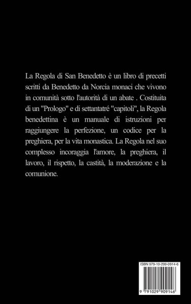 La Regola di San Benedetto è un libro di precetti scritti da Benedetto da Norcia monaci che vivono in comunità sotto l'autorità di un abate . Costituita di un "Prologo" e di settantatré "capitoli", la Regola benedettina è un manuale di istruzioni per raggiungere la perfezione, un codice per la preghiera, per la vita monastica. La Regola nel suo complesso incoraggia l'amore, la preghiera, il lavoro, il rispetto, la castità, la moderazione e la comunione.