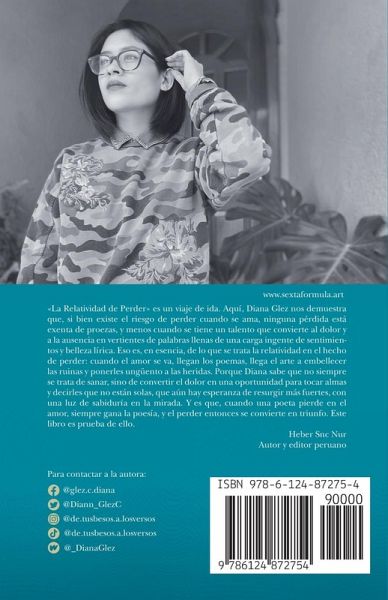 La Relatividad de Perder es un viaje de ida. Aquí, Diana Glez nos demuestra que, si bien existe el riesgo de perder cuando se ama, ninguna pérdida está exenta de proezas, y menos cuando se tiene un talento que convierte al dolor y a la ausencia en vertientes de palabras llenas de una carga ingente de sentimientos y belleza lírica. Eso es, en esencia, de lo que se trata la relatividad en el hecho de perder: cuando el amor se va, llegan los poemas, llega el arte a embellecer las ruinas y ponerles ungüento a las heridas. Porque Diana sabe que no siempre se trata de sanar, sino de convertir el dolor en una oportunidad para tocar almas y decirles que no están solas, que aún hay esperanza de resurgir más fuertes, con una luz de sabiduría en la mirada. Y es que, cuando una poeta pierde en el amor, siempre gana la poesía, y el perder entonces se convierte en triunfo. Este libro es prueba de ello.