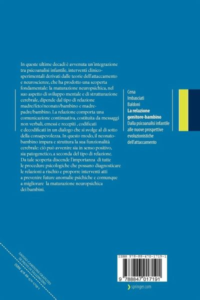 In queste ultime decadi è avvenuta un'integrazione tra psicoanalisi infantile, interventi clinico-sperimentali derivati dalle teorie dell'attaccamento e neuroscienze, che ha prodotto una scoperta fondamentale: la maturazione neuropsichica, nel suo aspetto di sviluppo mentale e di strutturazione cerebrale, dipende dal tipo di relazione madre/feto/neonato/bambino e poi madre-padre/bambino. La relazione comporta una comunicazione continuativa, costituita da messaggi non verbali, emessi e recepiti, codificati e decodificati in maniera automatica e inconsapevole. In questo modo, il neonato-bambino impara e struttura la sua funzionalità cerebrale: ciò può avvenire sia in senso positivo sia patogenetico, a seconda del tipo di relazione. Da tale scoperta discende l'importanza di tutte le procedure psicologiche che possano diagnosticare le relazioni a rischio e proporre interventi atti a prevenire future anomalie psichiche e/o a migliorare la maturazione neuropsichica dei bambini.