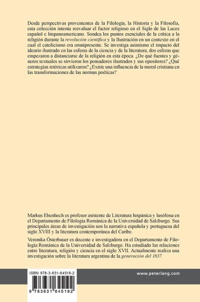 Desde perspectivas provenientes de la Filología, la Historia y la Filosofía, esta colección intenta reevaluar el factor religioso en el Siglo de las Luces español e hispanoamericano. Sondea los puntos esenciales de la crítica a la religión durante la revolución científica y la Ilustración en un contexto en el cual el catolicismo era omnipresente. Se investiga asimismo el impacto del ideario ilustrado en las esferas de la ciencia y de la literatura, dos esferas que empezaron a distanciarse de la religión en esta época. ¿De qué fuentes y géneros textuales se sirvieron los pensadores ilustrados y sus opositores? ¿Qué estrategias retóricas utilizaron? ¿Existe una influencia de la moral cristiana en las transformaciones de las normas poéticas?