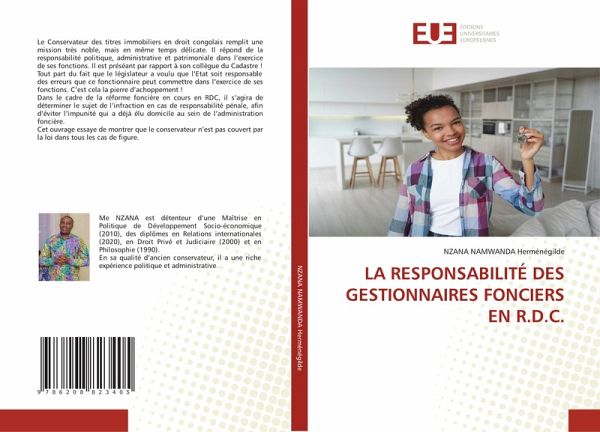 Le Conservateur des titres immobiliers en droit congolais remplit une mission très noble, mais en même temps délicate. Il répond de la responsabilité politique, administrative et patrimoniale dans l'exercice de ses fonctions. Il est préséant par rapport à son collègue du Cadastre ! Tout part du fait que le législateur a voulu que l'Etat soit responsable des erreurs que ce fonctionnaire peut commettre dans l'exercice de ses fonctions. C'est cela la pierre d'achoppement !Dans le cadre de la réforme foncière en cours en RDC, il s'agira de déterminer le sujet de l'infraction en cas de responsabilité pénale, afin d'éviter l'impunité qui a déjà élu domicile au sein de l'administration foncière.Cet ouvrage essaye de montrer que le conservateur n'est pas couvert par la loi dans tous les cas de figure.