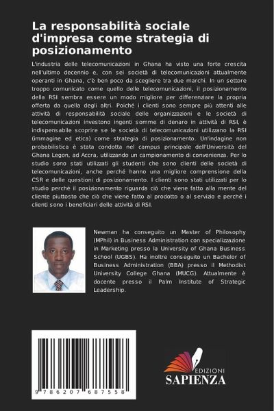 L'industria delle telecomunicazioni in Ghana ha visto una forte crescita nell'ultimo decennio e, con sei società di telecomunicazioni attualmente operanti in Ghana, c'è ben poco da scegliere tra due marchi. In un settore troppo comunicato come quello delle telecomunicazioni, il posizionamento della RSI sembra essere un modo migliore per differenziare la propria offerta da quella degli altri. Poiché i clienti sono sempre più attenti alle attività di responsabilità sociale delle organizzazioni e le società di telecomunicazioni investono ingenti somme di denaro in attività di RSI, è indispensabile scoprire se le società di telecomunicazioni utilizzano la RSI (immagine ed etica) come strategia di posizionamento. Un'indagine non probabilistica è stata condotta nel campus principale dell'Università del Ghana Legon, ad Accra, utilizzando un campionamento di convenienza. Per lo studio sono stati utilizzati gli studenti che sono clienti delle società di telecomunicazioni, anche perché hanno una migliore comprensione della CSR e delle questioni di posizionamento. I clienti sono stati utilizzati per lo studio perché il posizionamento riguarda ciò che viene fatto alla mente del cliente piuttosto che ciò che viene fatto al prodotto o al servizio e perché i clienti sono i beneficiari delle attività di RSI.