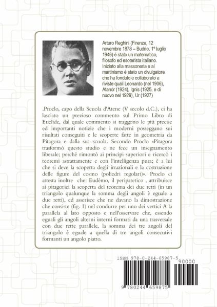 Proclo, capo della Scuola d'Atene (V secolo d.C.), ci ha lasciato un prezioso commento sul Primo Libro di Euclide, dal quale commento si traggono le più precise ed importanti notizie che i moderni posseggano sui risultati conseguiti e le scoperte fatte in geometria da Pitagora e dalla sua scuola. Secondo Proclo Pitagora trasformò questo studio e ne fece un insegnamento liberale; perché rimontò ai principi superiori e ricercò i teoremi astrattamente e con l'intelligenza pura; è a lui che si deve la scoperta degli irrazionali e la costruzione delle figure del cosmo (poliedri regolari)