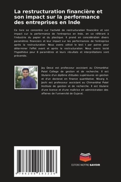 Ce livre se concentre sur l'activité de restructuration financière et son impact sur la performance de l'entreprise en Inde, en se référant à l'industrie du papier et du plastique. Il prend en considération divers paramètres financiers et leur impact sur les performances de l'entreprise après la restructuration. Nous avons utilisé le test t par paires pour déterminer l'effet avant et après la restructuration. Nous avons testé l'hypothèse pour 8 paramètres et leurs résultats et interprétations sont présentés.