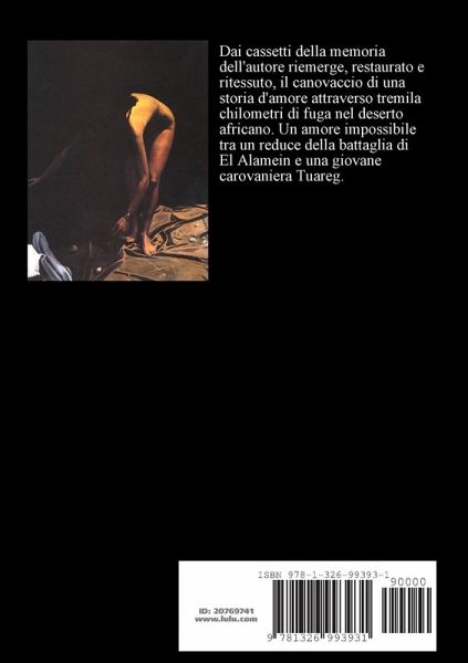 Dai cassetti della memoria dell'autore riemerge, restaurato e ritessuto, il canovaccio di una storia d'amore attraverso tremila chilometri di fuga nel deserto africano. Un amore impossibile tra un reduce della battaglia di El Alamein e una giovane carovaniera Tuareg.